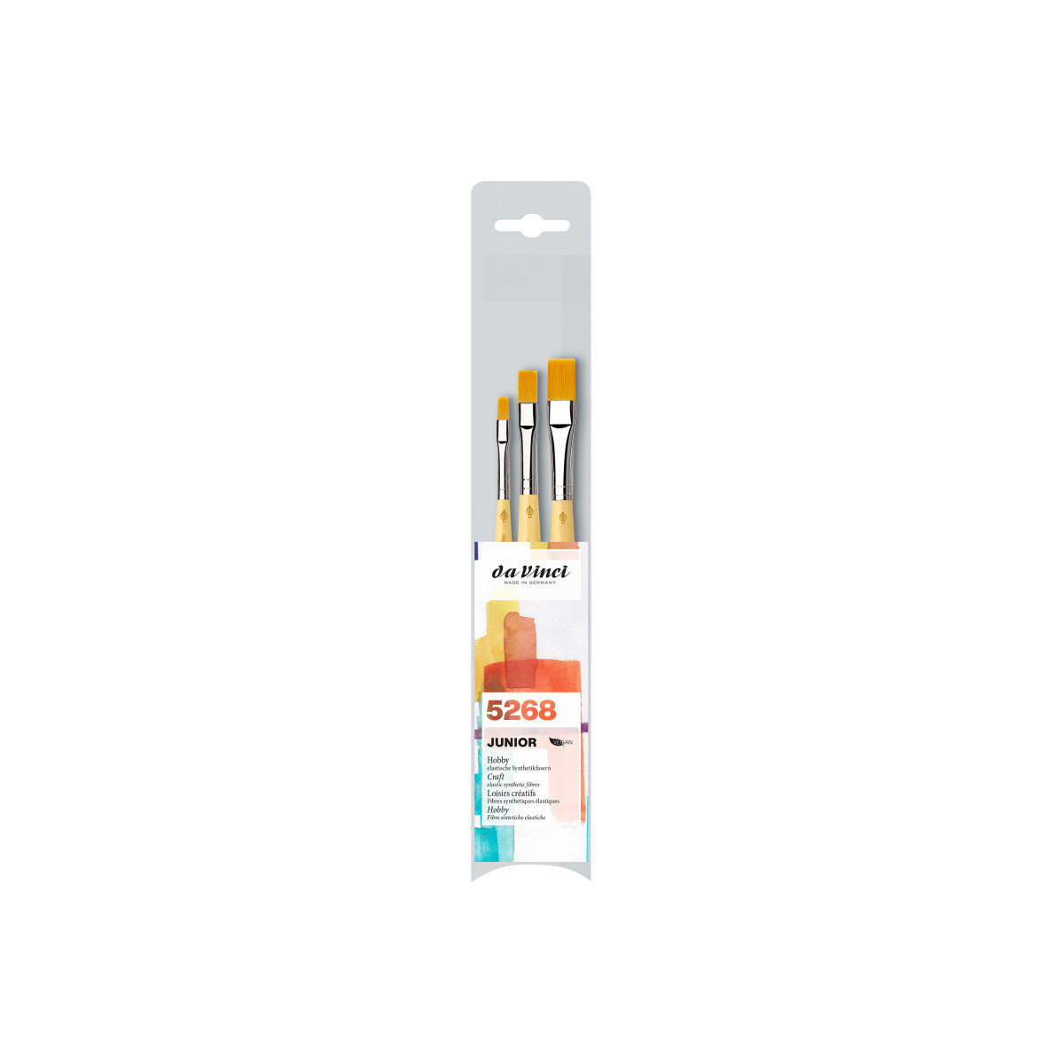 da Vinci Junior art brushes are a well built, easy to use brush developed to improve the quality of brushes for beginners. They can be used with any type of paint and are easy to clean. The "hold it like a pencil" handle shape makes for a comfortable and familiar grip. The brush won't roll away if dropped. It has a reinforced brush head for heavy wear that will always hold its edge. Unlike most cheaper brushes, da Vinci junior features a "rust resistant" seamless polished ferrule. Made in Germany. Sustainable wood handles. Vegan. Eco-Friendly. This set contains: Series 304 Size 4, 8 and 12.
