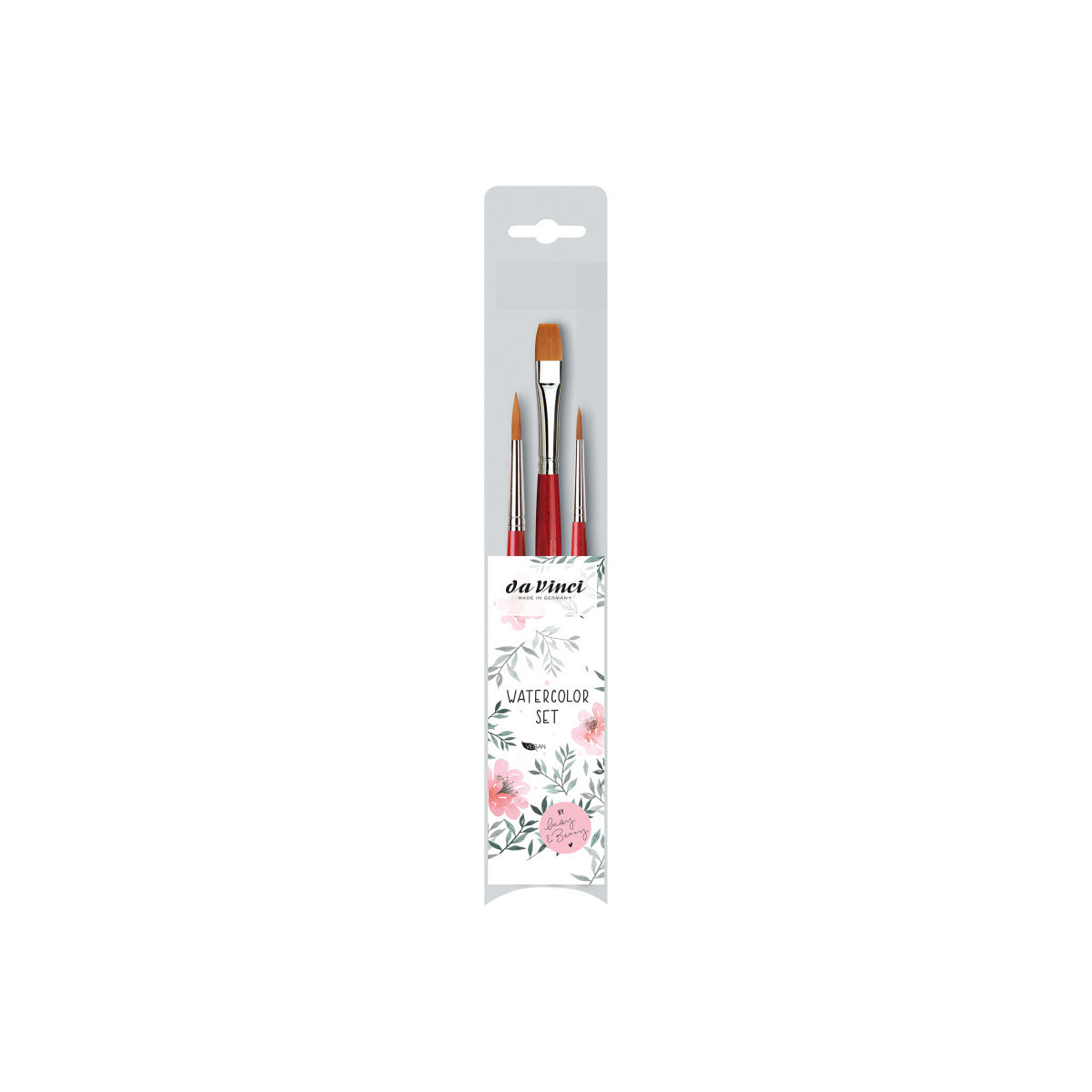 Together with the very successful author duo May & Berry, we offer a set using their recommendations for Lettering and Flowers. COSMOTOP-SPIN synthetics are great for watercolor, gouache, acrylic & ink. Spin holds more water than any other synthetic with a blend of 5 different diameters of extra smooth fiber ensuring the highest color-absorption of any synthetic brush. It has a sturdy construction and will retain its shape. Beautiful lacquered red handles and nickel-plated brass ferrules are rust proof. Certified green manufacturing with sustainable wood handles. Handmade in Germany at our family-owned factory since 1890. This set contains 3 COSMOTOP-SPIN brushes: Series 5580 (Round) Size 3 and 6 as well as Series 5880 (Flat) Size 12.