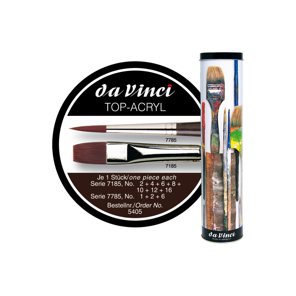 10 top-acryl brushes including gift can; da Vinci item 5405; including da Vinci brush series 7185 and 7785