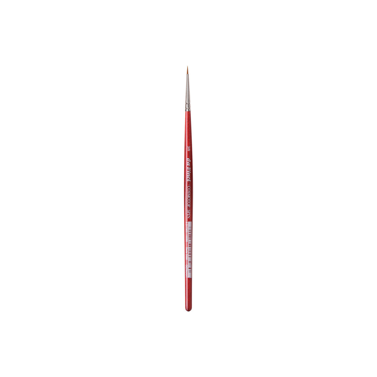 COSMOTOP-SPIN synthetics are great for watercolor, gouache, acrylic & ink. Spin holds more water than any other synthetic with a blend of 5 different diameters of extra smooth fiber ensuring the highest color-absorption of any synthetic brush. It has a sturdy construction and will retain its shape. Beautiful lacquered red handles and nickel-plated brass ferrules are rust proof. Hexagonal handles prevent the brush from rolling away. Certified green manufacturing with sustainable wood handles. Handmade in Germany at our family-owned factory since 1890.