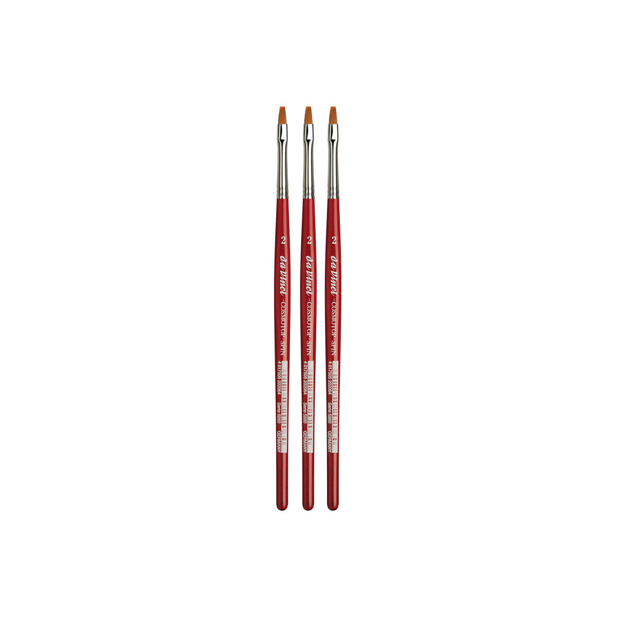 da Vinci COSMOTOP-SPIN Silkpainting Brush, Synthetic, Watercolor, Flat, Size 2, Pack of 3