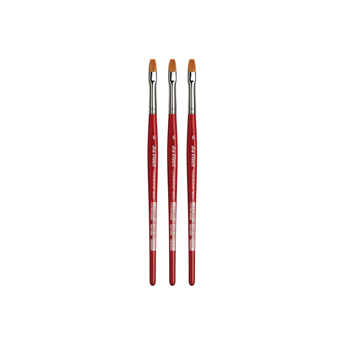 da Vinci COSMOTOP-SPIN Silkpainting Brush, Synthetic, Watercolor, Flat, Size 6, Pack of 3