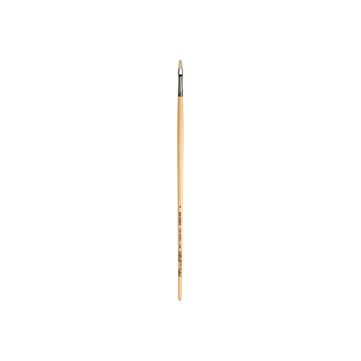 Extra strong and stiff for acrylics, oils & water-mixable oils TOP-ACRYL is constructed with 5 different diameters of extra strong Synthetic Bristle. Long handles fit right in your painting box or travel easel. Exclusive design developed by da Vinci. Extra stiff with a precise snap, and a favorite of Impasto painters (who use thick applications of paint). Whether massing color in the larger sizes or precision painting in the smaller sizes, TOP-ACRYL brushes offer the artist versatility and ruggedness. The brush features a long, natural, polished handle.