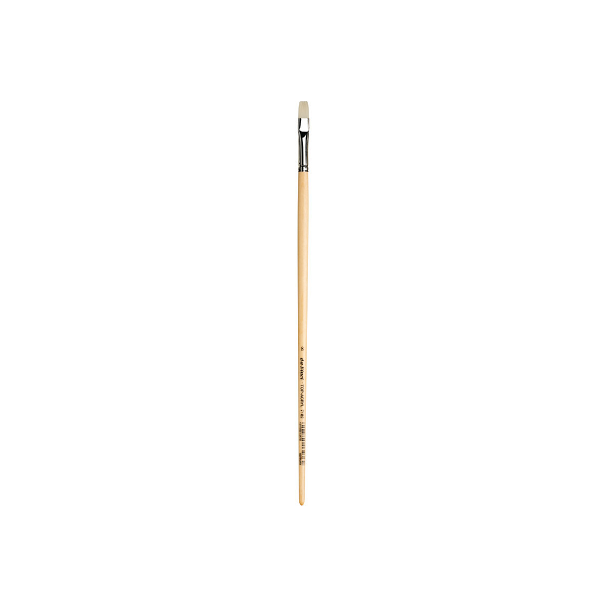 Extra strong and stiff for acrylics, oils & water-mixable oils TOP-ACRYL is constructed with 5 different diameters of extra strong Synthetic Bristle. Long handles fit right in your painting box or travel easel. Exclusive design developed by da Vinci. Extra stiff with a precise snap, and a favorite of Impasto painters (who use thick applications of paint). Whether massing color in the larger sizes or precision painting in the smaller sizes, TOP-ACRYL brushes offer the artist versatility and ruggedness. The brush features a long, natural, polished handle.