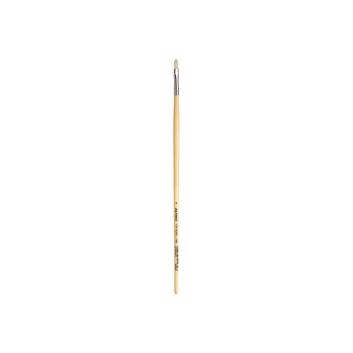 Extra strong and stiff for acrylics, oils & water-mixable oils TOP-ACRYL is constructed with 5 different diameters of extra strong Synthetic Bristle. Long handles fit right in your painting box or travel easel. Exclusive design developed by da Vinci. Extra stiff with a precise snap, and a favorite of Impasto painters (who use thick applications of paint). Whether massing color in the larger sizes or precision painting in the smaller sizes, TOP-ACRYL brushes offer the artist versatility and ruggedness. The brush features a long, natural, polished handle.