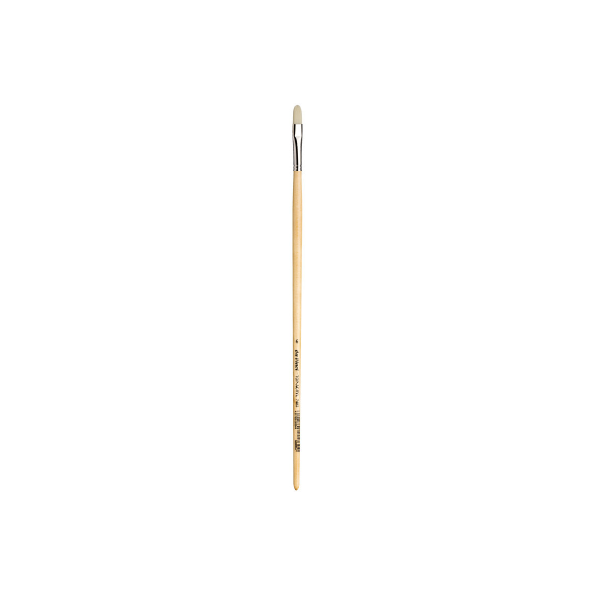 Extra strong and stiff for acrylics, oils & water-mixable oils TOP-ACRYL is constructed with 5 different diameters of extra strong Synthetic Bristle. Long handles fit right in your painting box or travel easel. Exclusive design developed by da Vinci. Extra stiff with a precise snap, and a favorite of Impasto painters (who use thick applications of paint). Whether massing color in the larger sizes or precision painting in the smaller sizes, TOP-ACRYL brushes offer the artist versatility and ruggedness. The brush features a long, natural, polished handle.