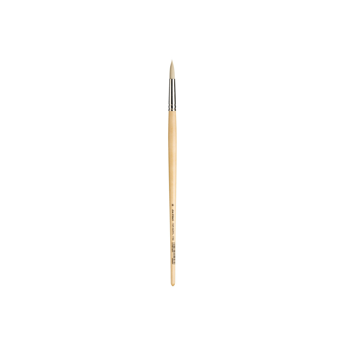 Extra strong and stiff for acrylics, oils & water-mixable oils TOP-ACRYL is constructed with 5 different diameters of extra strong Synthetic Bristle. Long handles fit right in your painting box or travel easel. Exclusive design developed by da Vinci. Extra stiff with a precise snap, and a favorite of Impasto painters (who use thick applications of paint). Whether massing color in the larger sizes or precision painting in the smaller sizes, TOP-ACRYL brushes offer the artist versatility and ruggedness. The brush features a long, natural, polished handle.