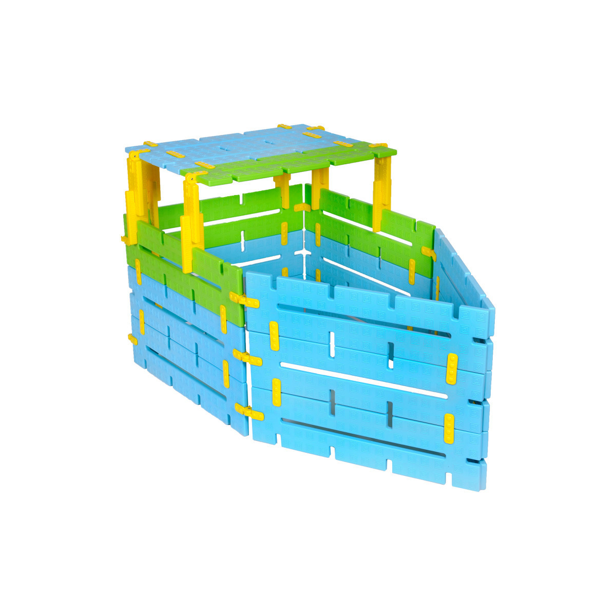 This versatile and fun set will allow children to build a variety of hideaways such as dens, bird hides, houses, shelters, boats and garages. It is a great set for encouraging role and pretend play. The pieces are designed so that it is easy for young children to join them together. The set can be used indoors or outdoors. All the pieces are made from durable HDPE supplied in bright colors. This 76 piece set includes 18 large connectors, 18 beams, 24 straight connectors and 16 flexi connectors. Age: 2+.