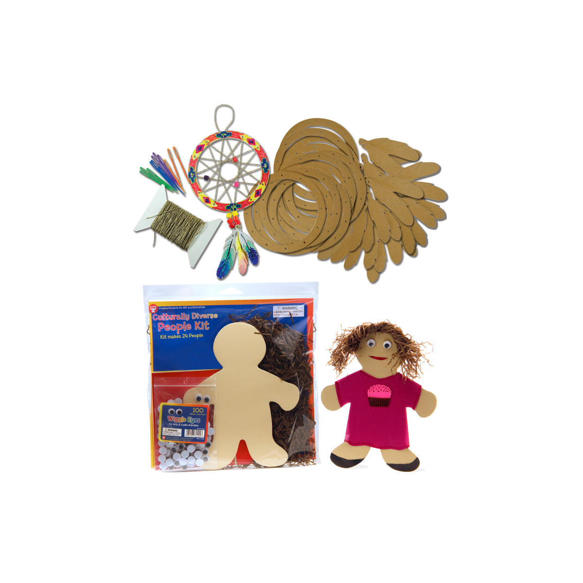 String this Native American craft together to ensure good dreams! Decorate the thick cardboard hoops with markers, paint or crayons before threading the string through the pre-punched holes. Use our stringing suggestions or ask students to invent their own patterns. Don’t forget to decorate the included card feathers. Try adding beads to your dream catcher for a bright, dynamic look. Includes: 12 dream caters, 5.25" x 5.25" (13 x 13 cm), 97.5' (40m) twine, 12 plastic needles, beads and guide.