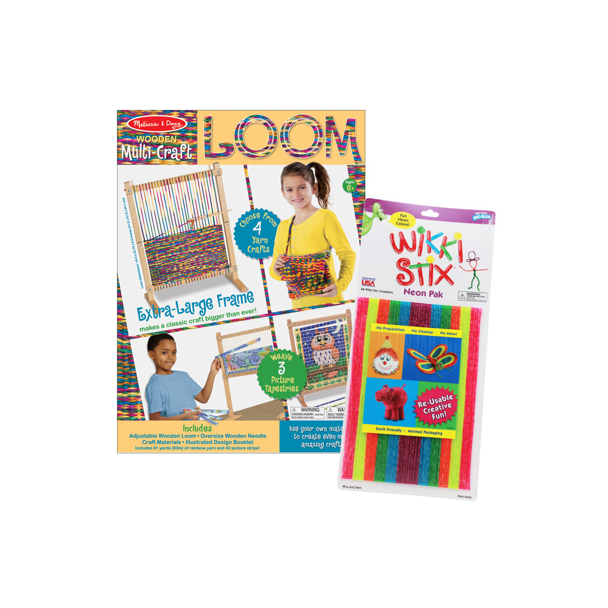 Youngsters will be thrilled to get creating with this Multi-Craft Weaving Loom. With its easy-to-use adjustable frame, oversize wooden needle, and generous 91 yards of rainbow yarn, kids can choose to make a scarf, a tasseled coaster, a drawstring pouch, a crafty carry-all-or whatever they design themselves! Great for all skill levels, this Loom also includes three picture tapestries to weave. Includes adjustable wooden loom, oversize wooden needle, craft materials, illustrated design booklet, 91 yards (83 m) of rainbow yarn, and 42 picture strips.