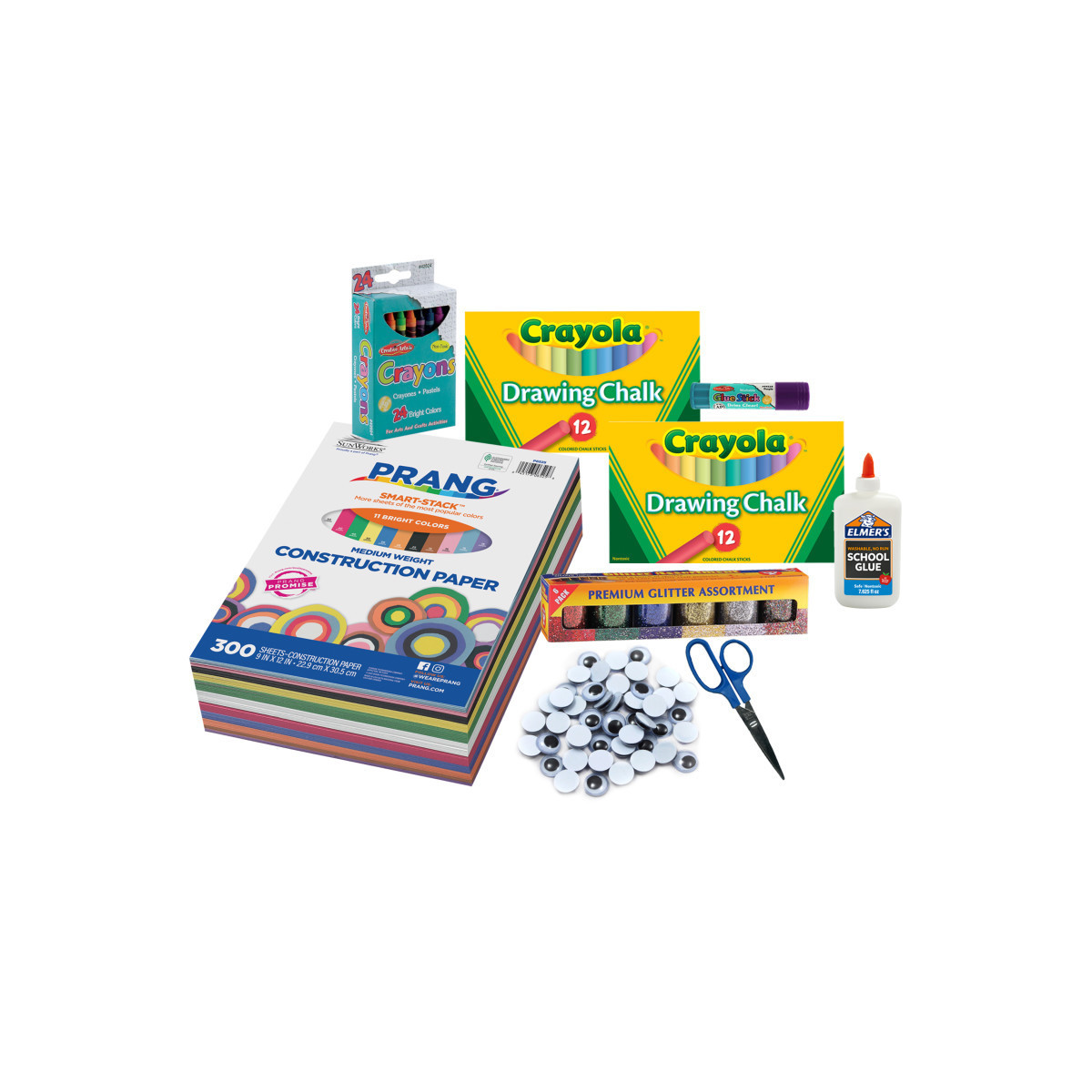 Produces strong, brilliant colors for artwork on construction paper, cardboard, paper bags, and craft paper. Each chalk stick is 3-1/8" long by 3/8" in diameter. Includes 24 non-toxic sticks assorted colors.