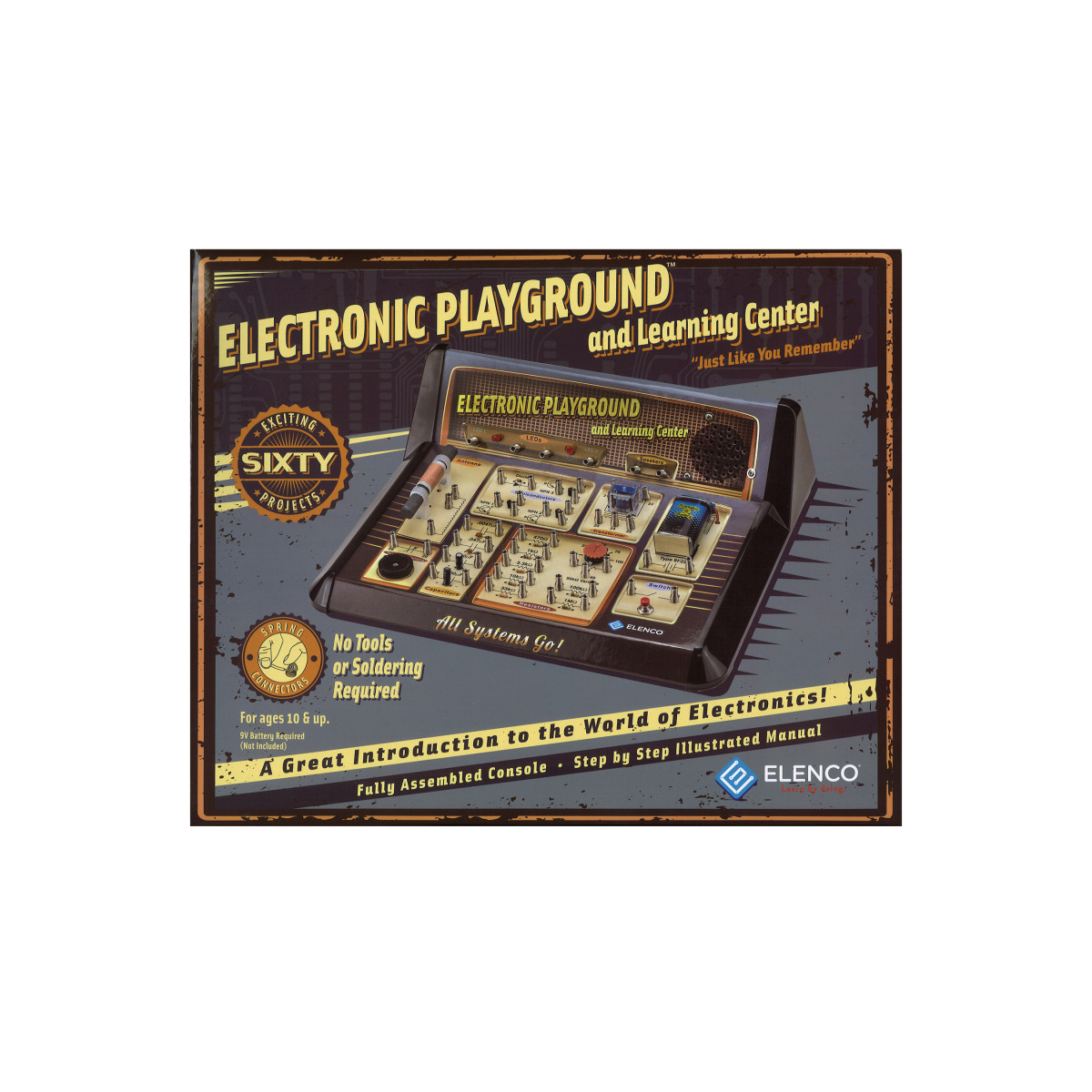 Build over 60 electronic projects including a finger touch lamp, a metal detector, a transistor radio, and an alarm with the 60-In-One Electronic Playground. Learn about voltage, currents, resistors, capacitors, and much more. Uses spring hook-up method.