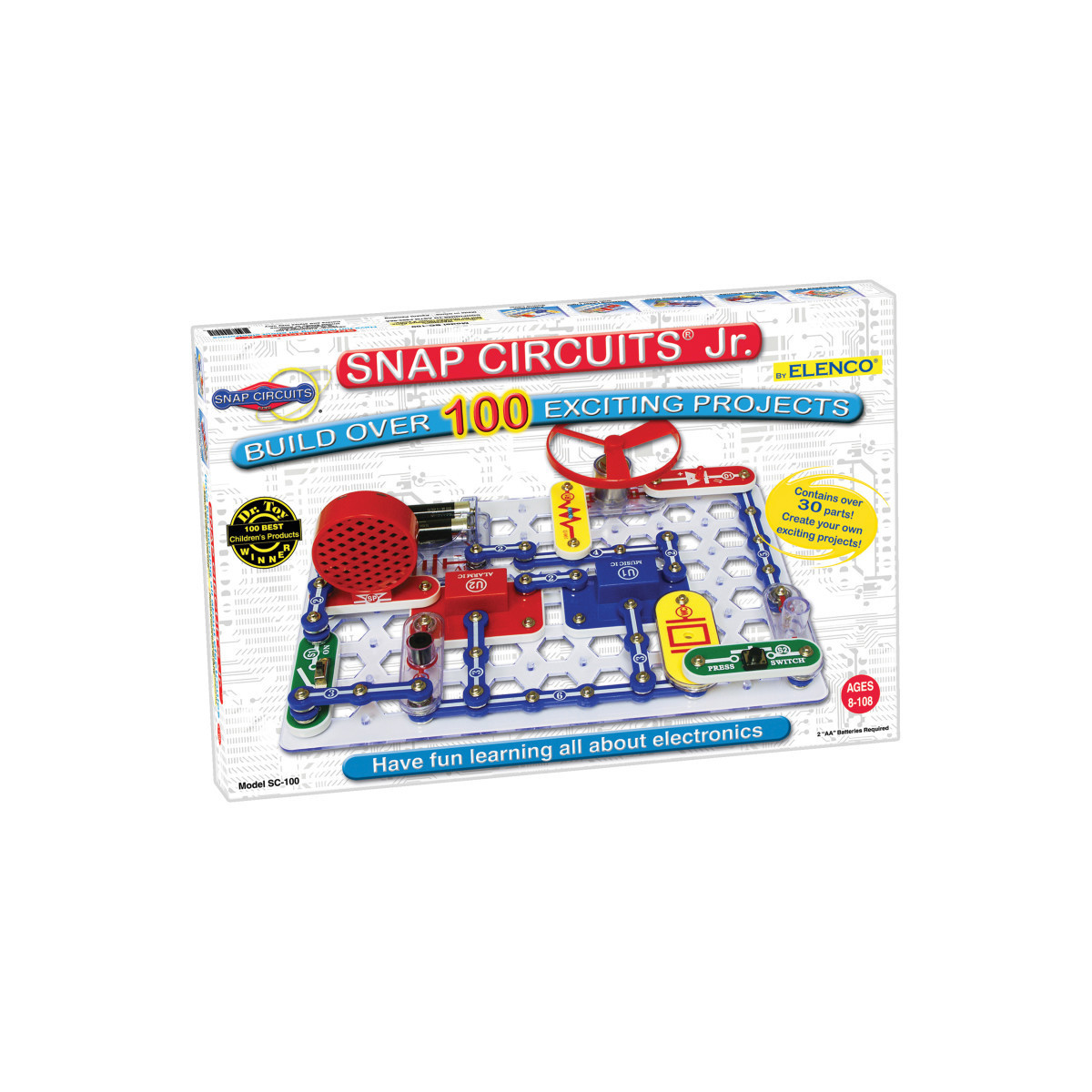 Snap Circuits® uses building pieces with snaps to assemble different electronic circuits on a simple "rows-and-columns" base grid that functions like the printed circuit board found in most electronic products. Each component is easily identifiable by a different color and functional purpose. Snap Circuits® makes learning electronics easy and fun! Just follow the colorful pictures in our manual and build exciting projects such as a flying saucer, alarms, doorbells and much more! You can even play electronic games with your friends. All parts are mounted on plastic modules and snap together with ease. Enjoy hours of educational fun while learning about electronics. No tools required. Includes Projects 1-101 manual.