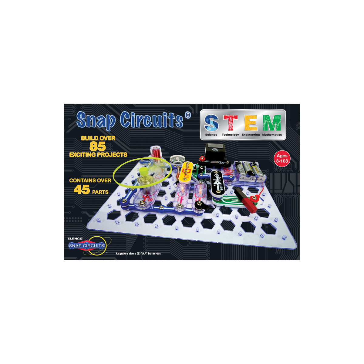 Snap Circuits® uses building pieces with snaps to assemble different electronic circuits on a simple "rows-and-columns" base grid that functions like the printed circuit board found in most electronic products. Each component is easily identifiable by a different color and functional purpose. Learn about electricity and magnetism, and how they relate to each other. Projects provide an understanding of magnetic fields, how the electricity in your home works, and how switches control the electricity to the lights in your home. Snap Circuits® STEM reinforces STEM concepts with fun and creative activities and contains an educational manual with a focus on STEM and getting kids excited as they learn.