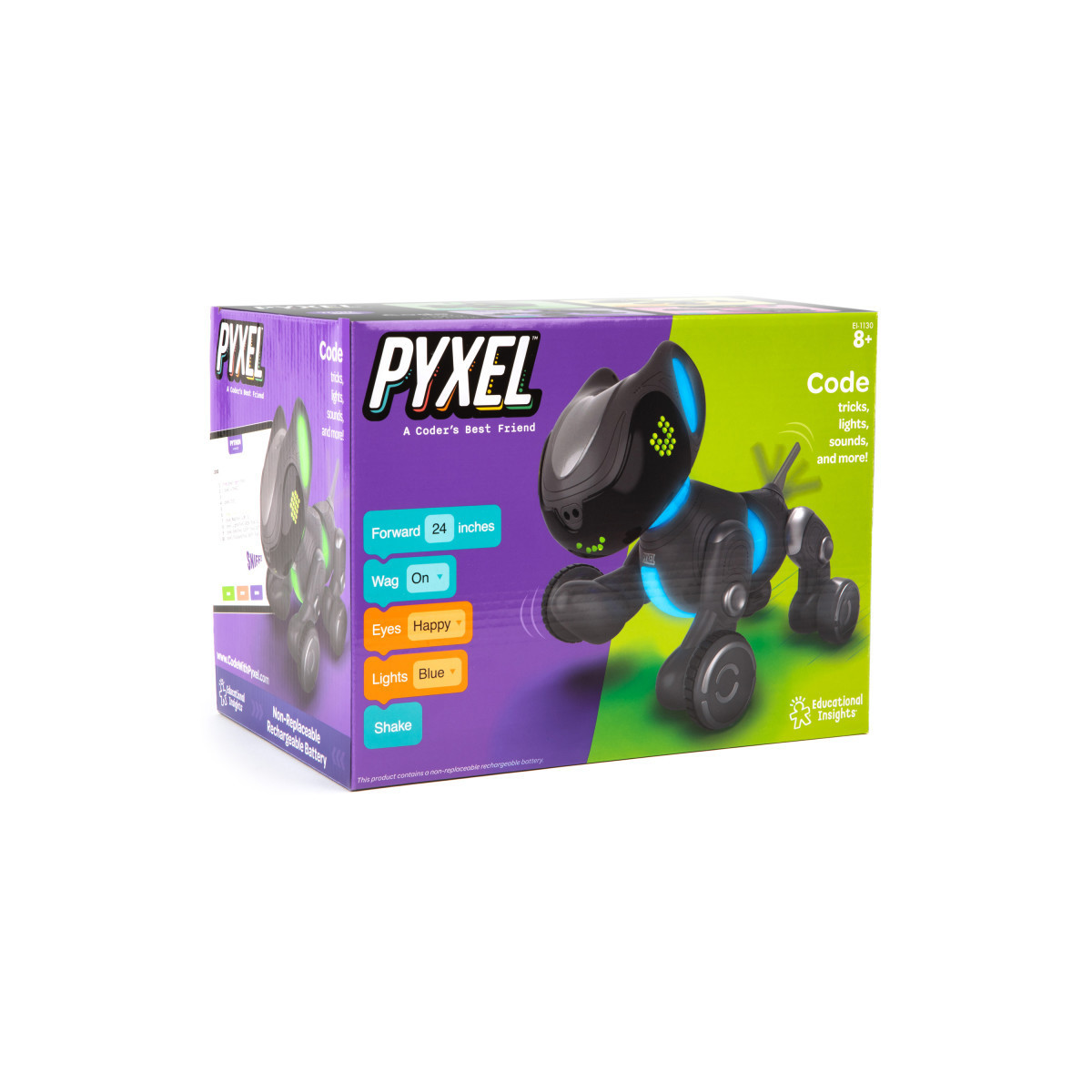This programmable pet is kids' best coding friend! Kids can use a computer or tablet to code this four-legged friend and level up their coding skills! No coding experience? No problem! Start with drag and drop coding language Blockly, and level up to advanced Python coding! Code your pet to do cool tricks, change color, make and react to sounds, and express emotions! Kids can activate the code from their tablet or computer or step away from the device with the Code Activator! Includes CODE-E, User Interface, and Code Activator.