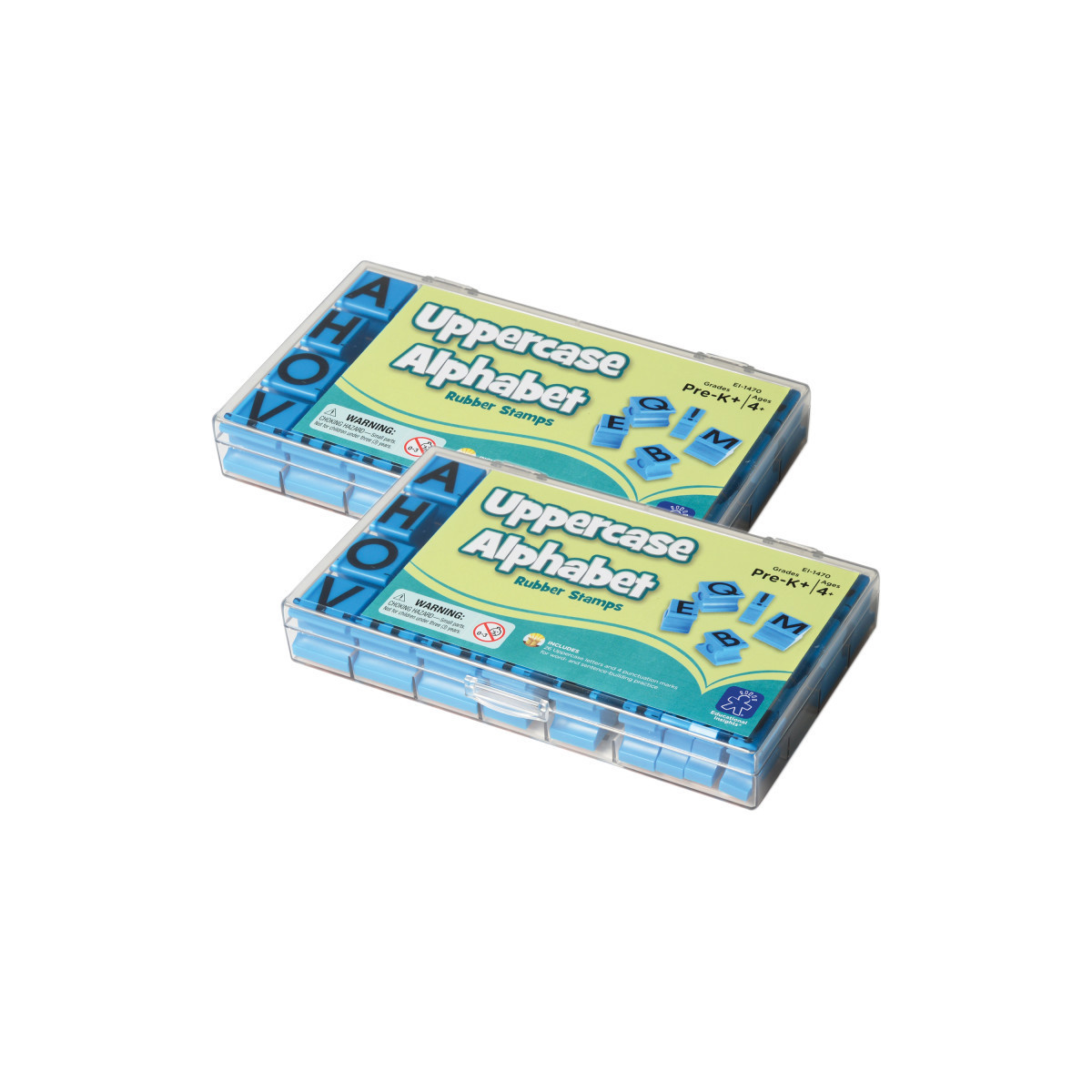 Stamp, spell, and play with the Uppercase Alphabet Rubber Stamps from Educational Insights. These high-quality rubber stamps with easy-grip handles are the perfect size for little hands. Each set comes in a durable, clear plastic storage case for easy clean up and storage. Perfect for learning letters, spelling, sentence building, and craft time! Each set includes 26 letters and 4 punctuation marks. Sold as 2 sets for a total of 60 stamps.