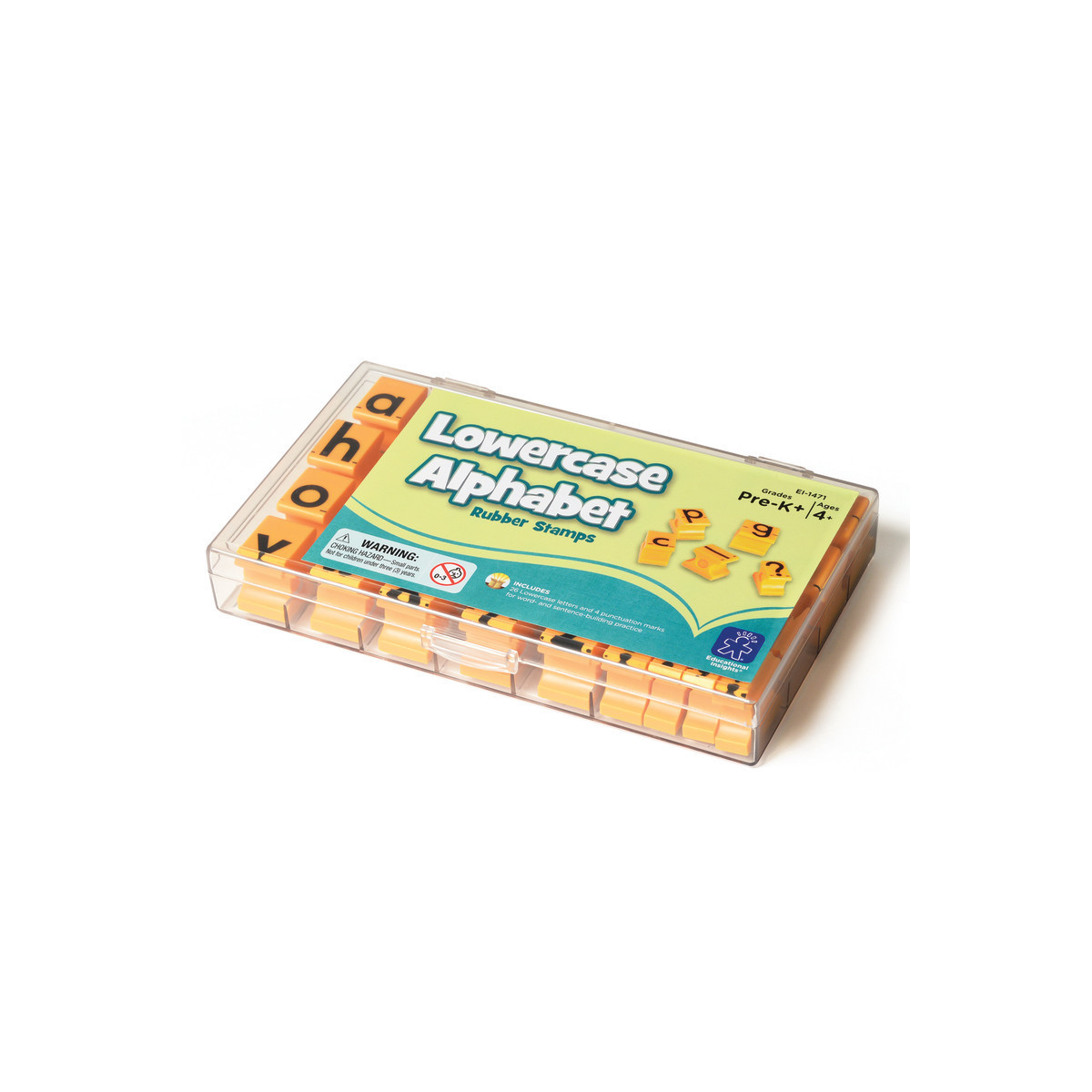 - Stamp, spell, and play with the Uppercase Alphabet Rubber Stamps from Educational Insights. These high-quality rubber stamps with easy-grip handles are the perfect size for little hands. Each set comes in a durable, clear plastic storage case for easy clean up and storage. Perfect for learning letters, spelling, sentence building, and craft time! Each set includes 26 letters and 4 punctuation marks. Sold as 2 sets for a total of 60 stamps.