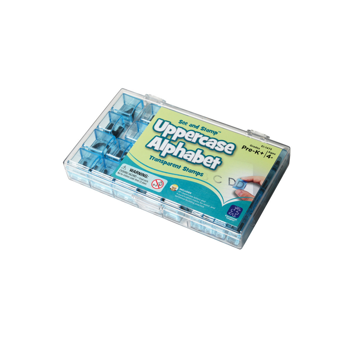 Get creative in hands-on literacy activities with stamps. Allows for perfect placement with transparent plastic. Helps children manipulate stamps with easy-grip handles. Includes durable plastic storage case. Stamps measure approximately 0.625'' each. Features 26 uppercase stamps for letter recognition, spelling and word-building activities. Grades PreK+.