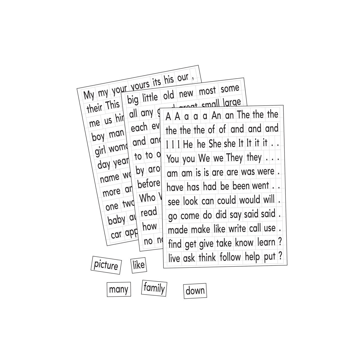 Reinforce sight words in context anywhere you can stick a magnet! Allows students to create hundreds of sentences and stories in centers. Works on any magnetic surface, including magnetic whiteboards and file cabinets. Supports beginning reading activities focusing on phonics, rhyming, sentence building, parts of speech and more. Includes over 240 sight words and punctuation marks. Grades K+.