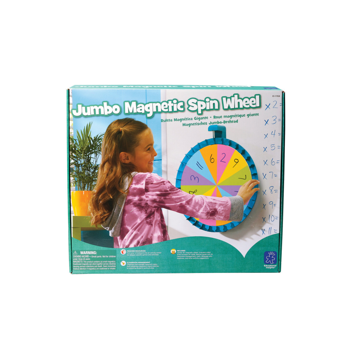 - Includes jumbo 16" magnetic spinner, 3 double-sided write-on/wipe-off cards; teacher guide with 16 classroom management, math, language arts, readiness, and other activity suggestions