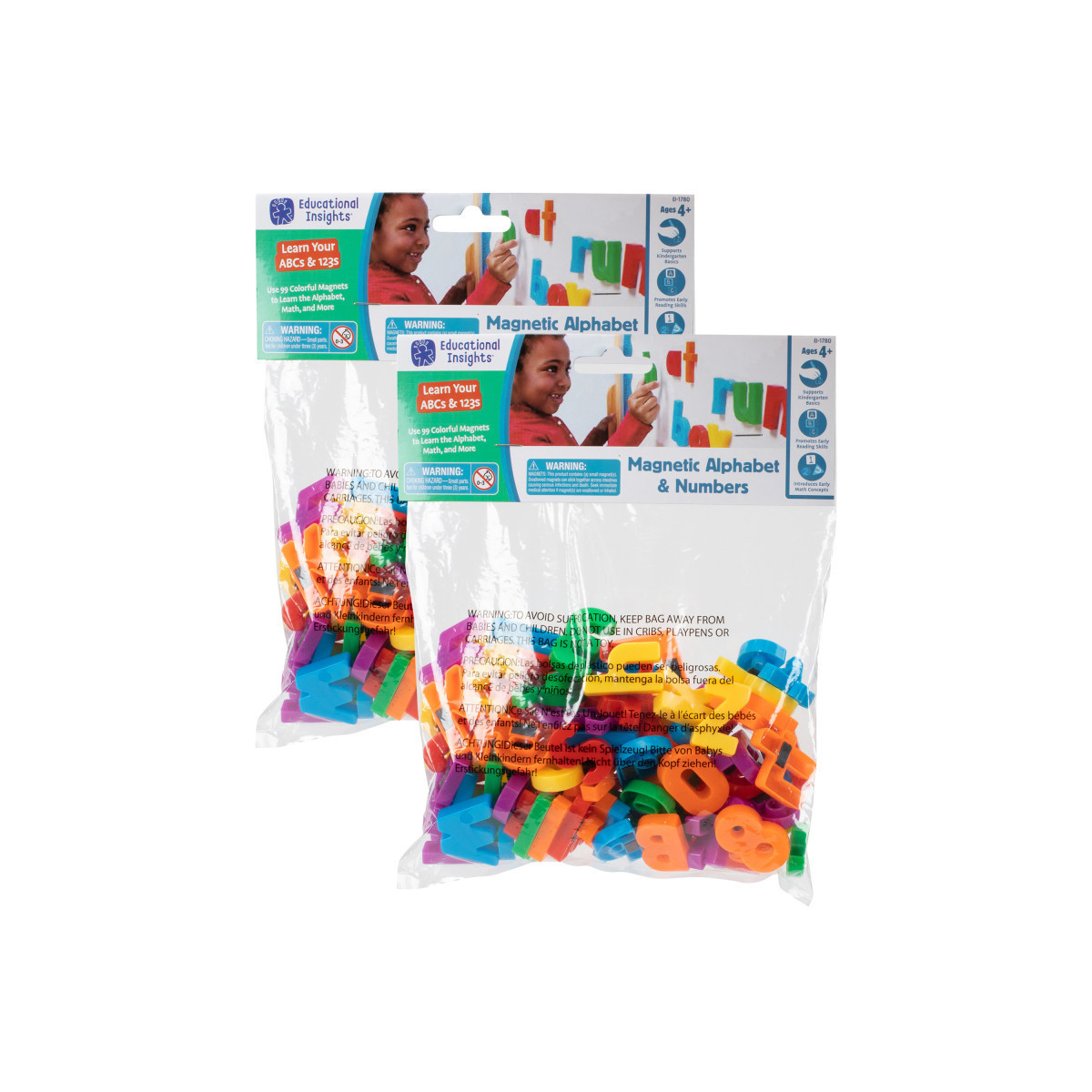 Colorful shapes and sizes firmly adhere to any metal surface. Great for extending beginning lessons in spelling, language, story-telling, math and more. Each 99-piece set includes 36 capitals, 36 lowercase, 20 numbers, 7 math symbols. Magnetic board sold separately. Sold as 2 complete sets, 198 pieces total.