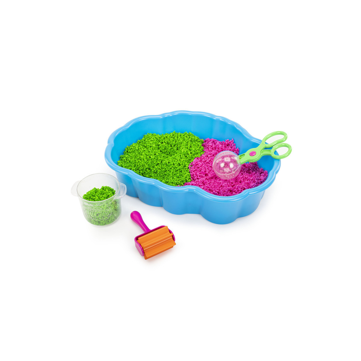- Includes sensory bin, 2 colors of Playfoam Pluffle, and 3 fine motor tools: handy roller, scissor scoopers, and collection cup.