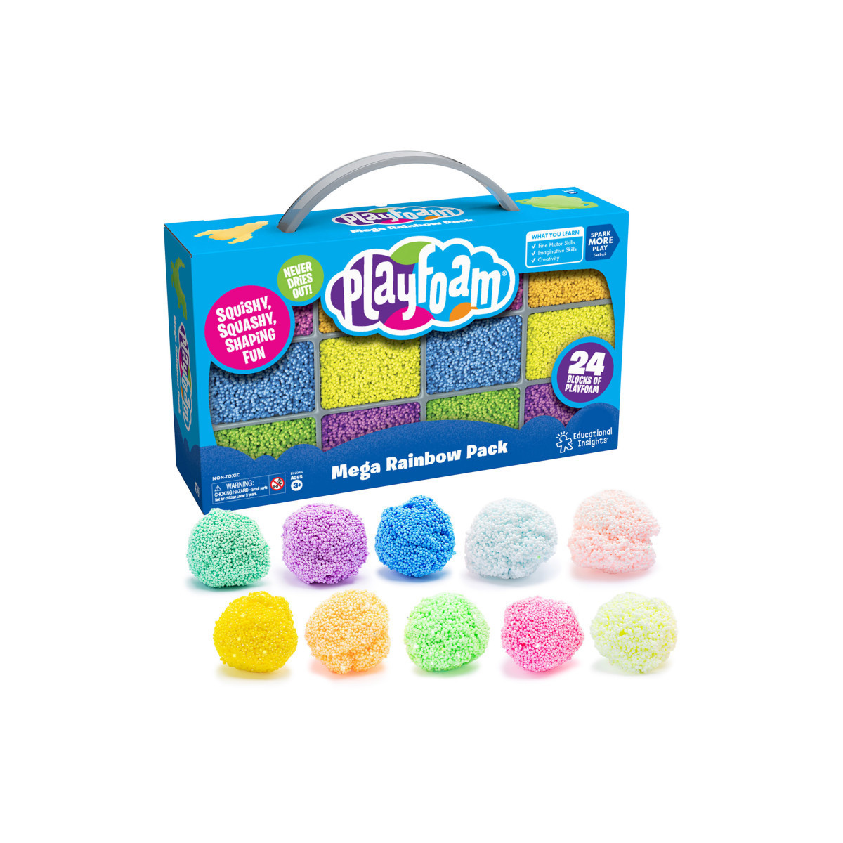 There's no end to the sensory stimulation and creativity with the Playfoam Mega Pack! Preschoolers can squish, squash, squeeze, and sculpt this super-satisfying, kid-safe, non-toxic sensory compound, then smash it down and start all over again. Non-toxic Playfoam never dries out, so the creativity never ends. Plus, Playfoam bricks blend beautifully, so kids can create their very own custom Playfoam colors. Set includes Classic Playfoam, Glow-in-the-Dark Playfoam, and Sparkle Playfoam for a totally tactile Playfoam party!