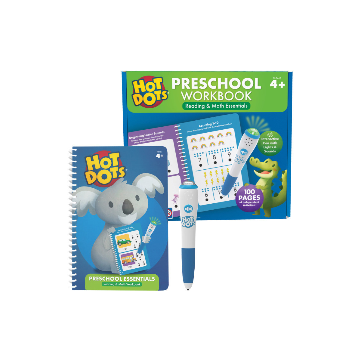 - EVERYTHING YOU NEED FOR PRE-K SUCCESS: Includes two spiral-bound activity books, each featuring 50 pages of standards-based, foundational preschool reading and math activities including letter recognition, letter sounds, counting, numbers, and more; and electronic Hot Dots pen with lights, sound effects, and mute button. Pen requires 2 AAA batteries (not included)