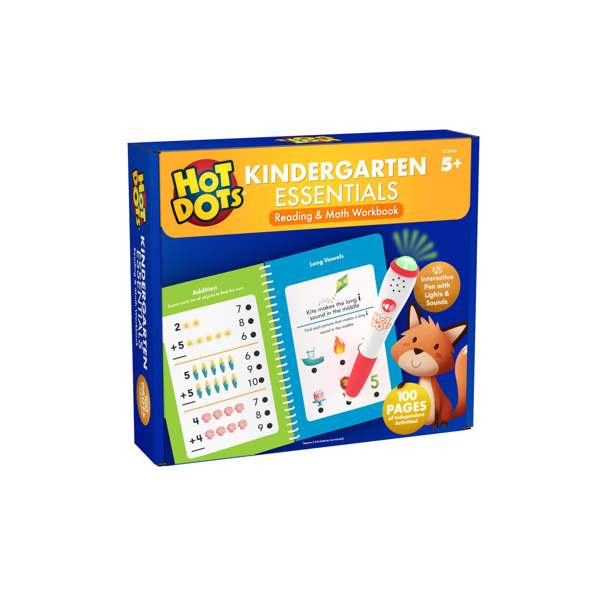 - EVERYTHING YOU NEED FOR SCHOOL SUCCESS: Includes two spiral-bound activity books, each featuring 50 pages of standards-based, foundational Kindergarten reading and math activities including letter and vowel sounds, addition, subtraction, and more; and electronic Hot Dots pen with lights, sound effects, and mute button. Pen requires 2 AAA batteries (not included)
