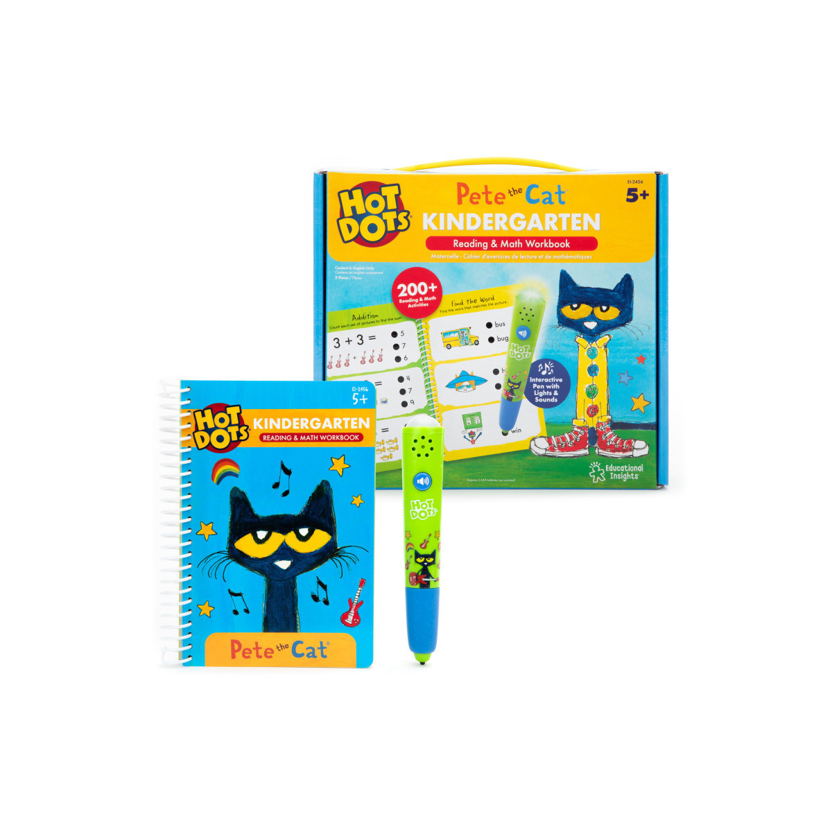 - READING AND MATH SET INCLUDES: Two-in-one activity book with 200 reading and math activities and interactive Pete the Cat Hot Dots pen. Ages 5+. Requires 2 AAA batteries (not included)