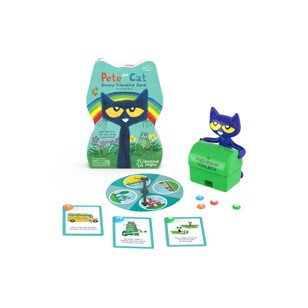 Use the Friendship Toolbox to help Pete the Cat learn to be a good friend. The first player to match each token with a card wins! Includes Pete the Cat Friendship Toolbox dispenser, 16 plastic tokens, 40 situation cards, spinner, and guide.