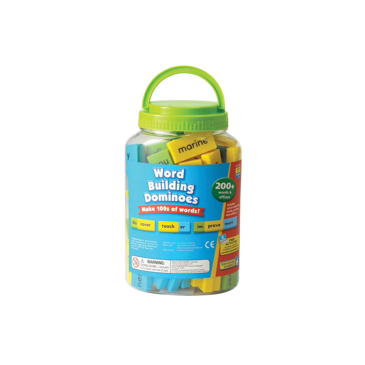 Word Building Dominoes are a fun, hands-on way for beginning readers to practice using word analysis and word formation skills to build vocabulary. Included are 108 double-sided, color-coded dominoes (216 words and affixes): 44 green prefixes, 70 blue suffixes, 102 yellow base words. Use the dominoes with small groups of students, or place them at a center for hours of independent, skill-building learning.