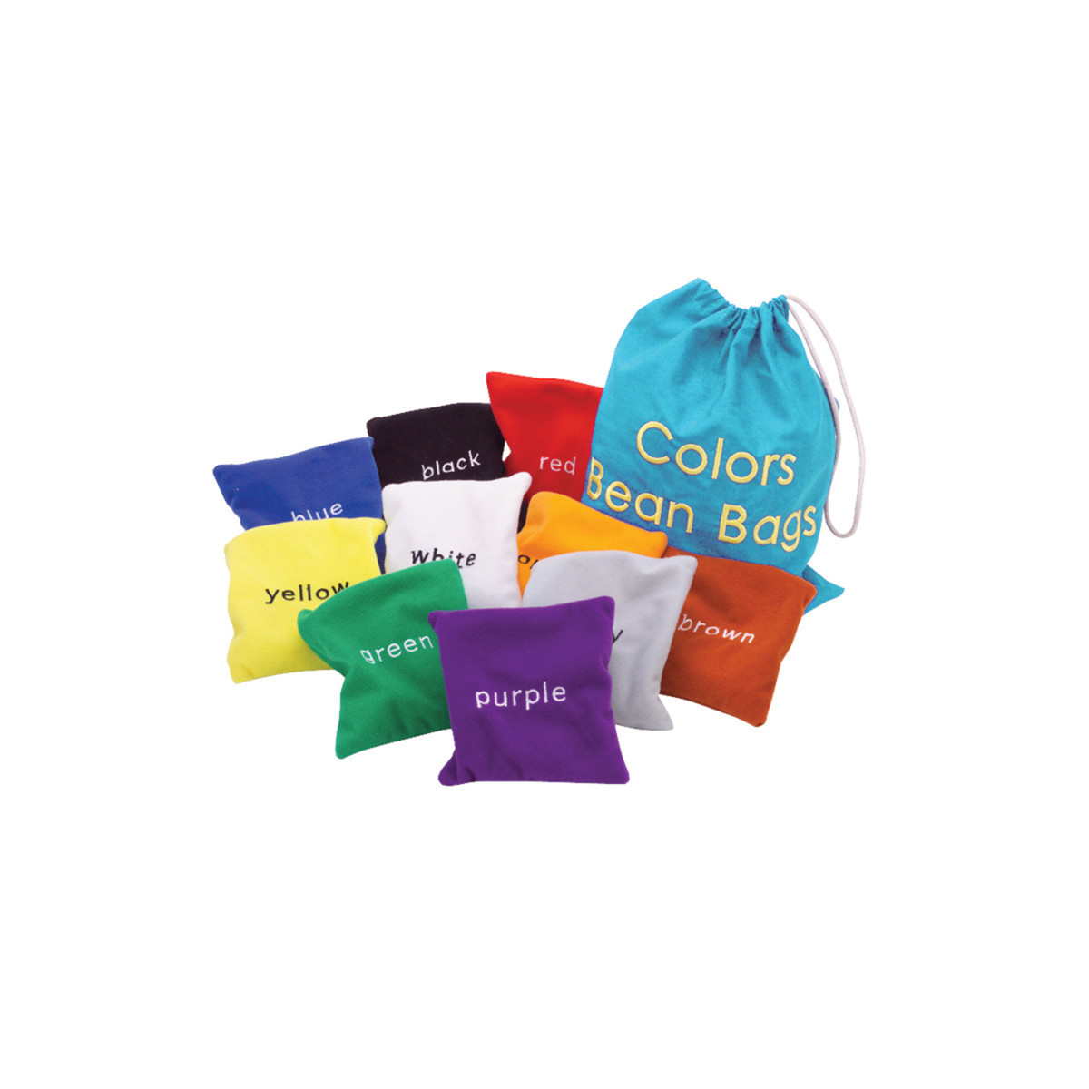 Kids will love learning their colors and color words with this rainbow of beautifully embroidered felt bean bags in ten cool colors: red, blue, yellow, green, orange, purple, brown, black, gray and white. Each bean bag measures 4" x 4.25" - the perfect size for small hands - and stores conveniently in its own drawstring cloth bag. Includes a handy "Tip Sheet" with fun color identification and coordination games and activities.