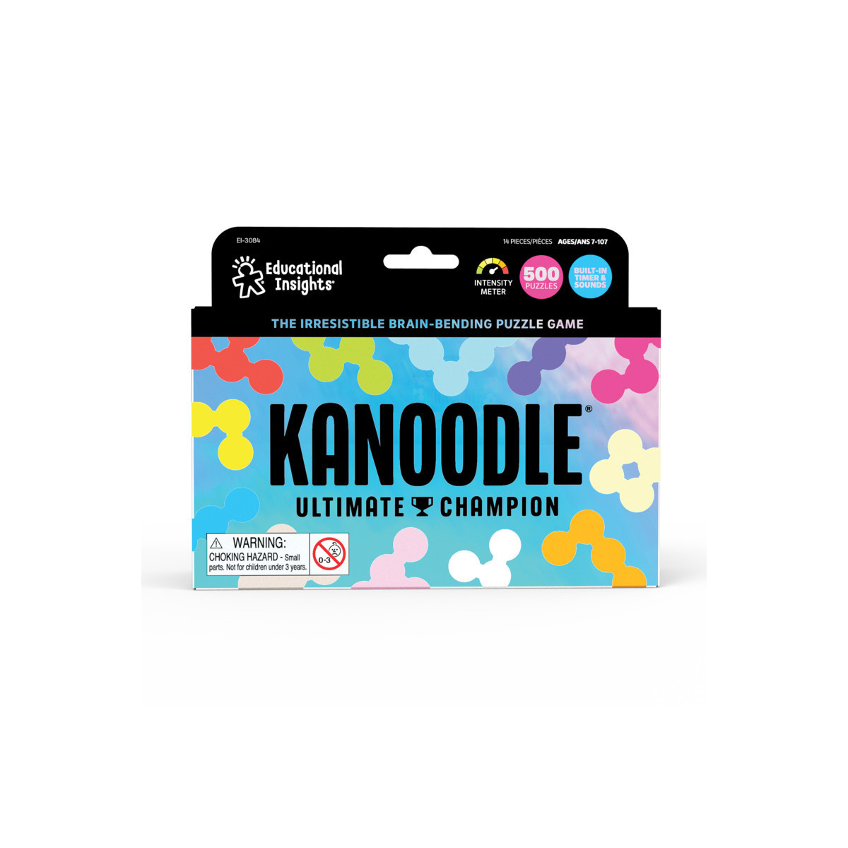 Become the ultimate Kanoodle champion! The newest addition to the viral line of puzzle games boasts 500 brand-new puzzle challenges and a built-in, battery-powered timer. Includes 12 metallic-finish Kanoodle pieces, battery-powered timer, and guide.