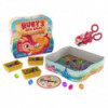 Sharpen those scissor skills! Spin and use the scooper tool to collect the matching color gem. First to collect all 5 wins! Includes Ruby scissor scooper tool, 20 gems in five colors, spinner, four treasure chests, guide, and game board (doubles as package!).
