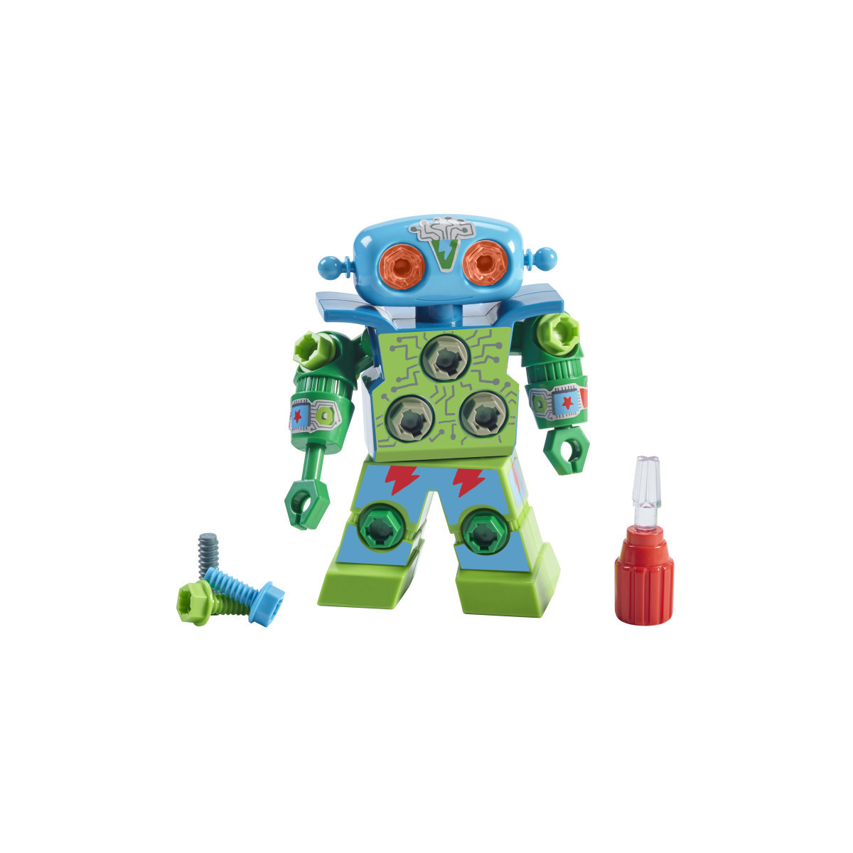 Preschoolers can snap together their robot’s arms and then practice drilling multicolored bolts with the kid-friendly screwdriver