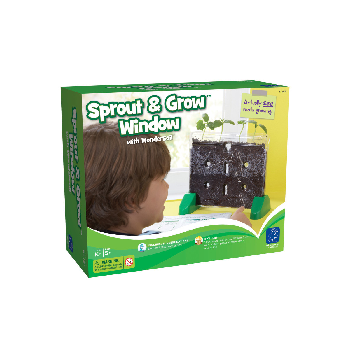 Get a Worms-Eye View of Root Growth. This transparent "natures window" allows gardeners of all ages to watch seeds sprout and grow into plants-right before their eyes! The large, transparent Sprout & Grow Window stands upright on a tabletop or windowsill. Special potting soil nurtures seeds for optimum growth. Comes with packets of bean and pea seeds, and a step-by-step guide with instructions, suggested activities, and journal pages to fill in as you follow the process from seed planting to full-grown plants.