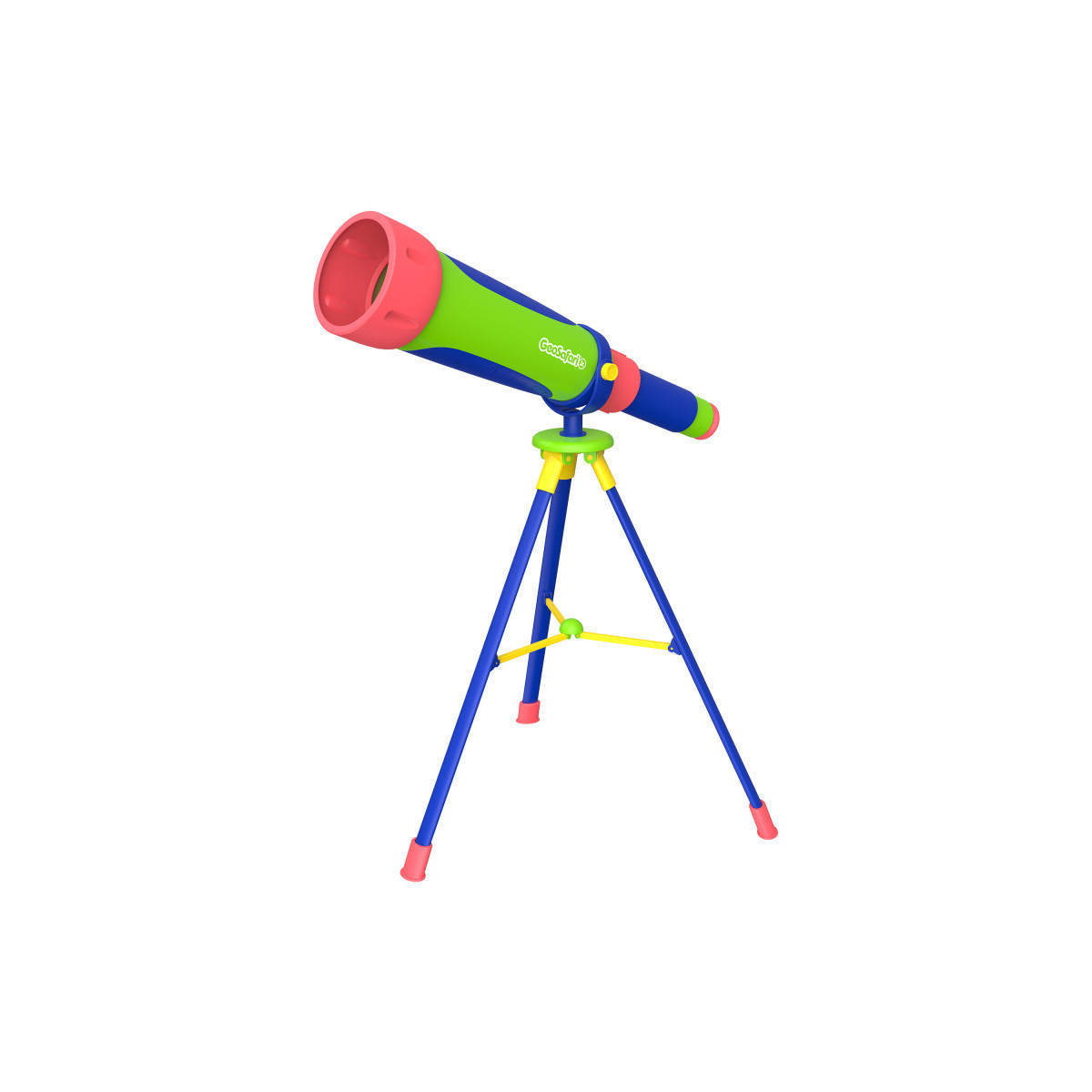 Curious kiddos can view everything from the night sky to birds in a tree, in closer detail with this kid-tough telescope designed specifically for little eyes and hands. Just-right, 10x magnification, an easy-focus knob, and double eyepiece make it easy to locate and understand the objects in the viewer. Includes collapsible tripod.