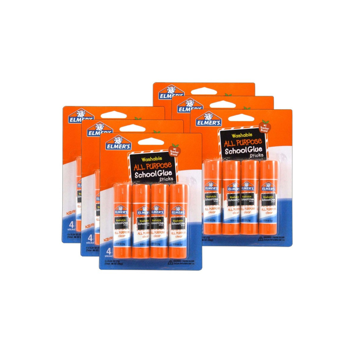 Elmer's all purpose school glue sticks have a clear, smooth application and are perfect for school projects. These easy to use, easy to clean-up washable glue sticks are the choice for teachers everywhere. Each pack includes 4 glue sticks, 0.24oz per stick. Sold as 6 packs for a total of 24 glue sticks.