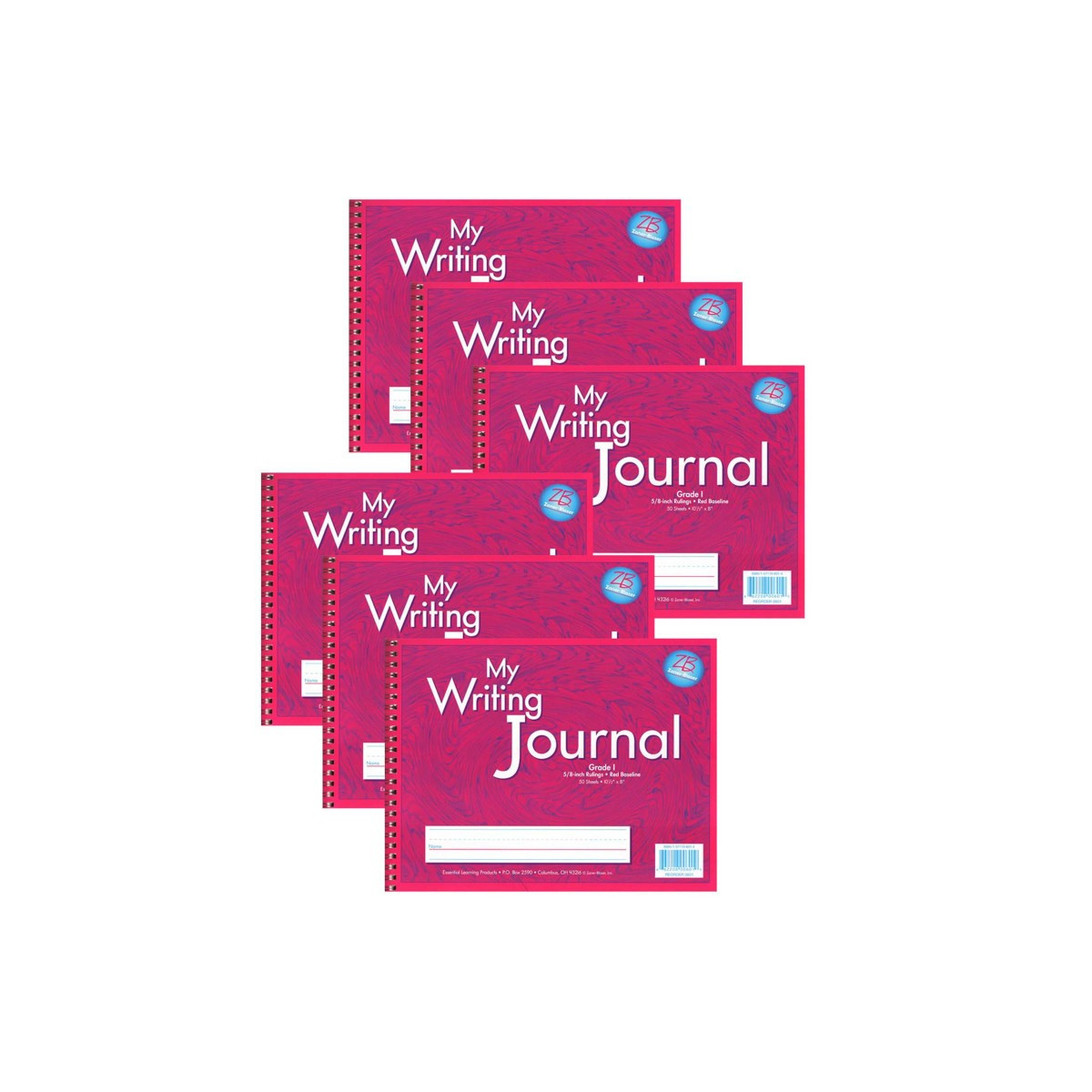 The Zaner-Bloser® My Writing Journals that will "WOW" your students! These high-quality writing journals feature Zaner-Bloser® 5/8" rulings appropriate for elementary grades and are guaranteed to provide some extra cool motivation with their contemporary designs. All are spiral-bound to lay flat for no-hassle writing. Each journal includes 50 sheets/100 pages and measures 10.5" x 8". For Grade 1. Sold as a pack of 6 journals.