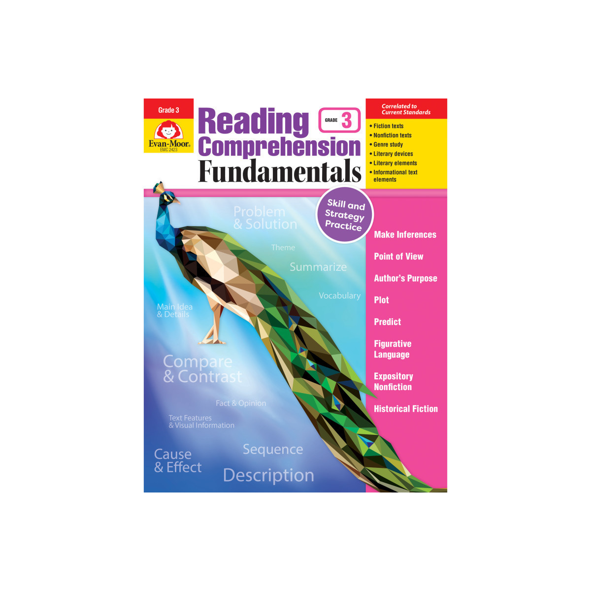 Help your students improve their reading comprehension with this focused approach! Reading Comprehension Fundamentals provides you tools to target the reading skills and strategies with which students need the most help. The 35 skill-based units include fiction and nonfiction texts, a variety of practice activities, and a unit review. The comprehensive units guide students to develop a deep understanding of each skill, strategy, and genre introduced with a simple "teach, practice, and assess" approach. Ample reading experiences and varied response formats help to improve students' overall comprehension and test-taking skills.