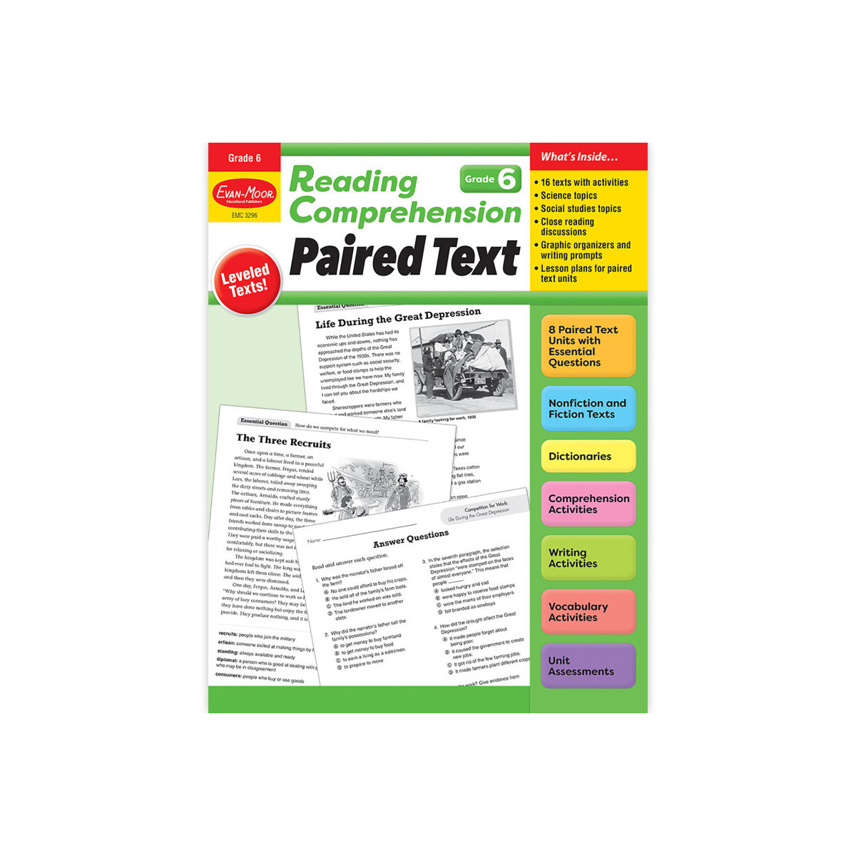 - Reading Comprehension: Paired Text, Grade 6 contains reading comprehension practice that boosts sixth-grade students' competencies across the curriculum.