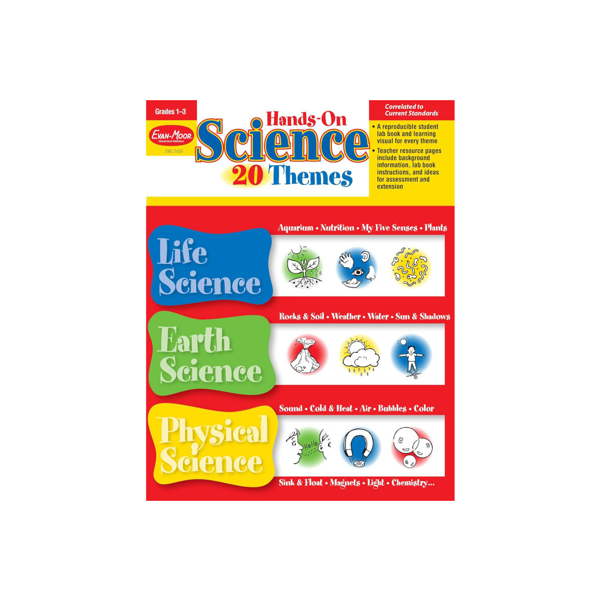 Turn to Hands-On Science-20 Themes for 20 highly motivating, classroom-tested science units that help students learn by doing. Students practice the scientific inquiry skills outlined in the National Science Education Standards. Never has hands-on science been so easy to do. The complete teacher instructions make the units easy to implement. Hands on Science-20 Themes covers important topics from Life Science, Earth Science, and Physical Science.Each of the 20 units includes the following sections: