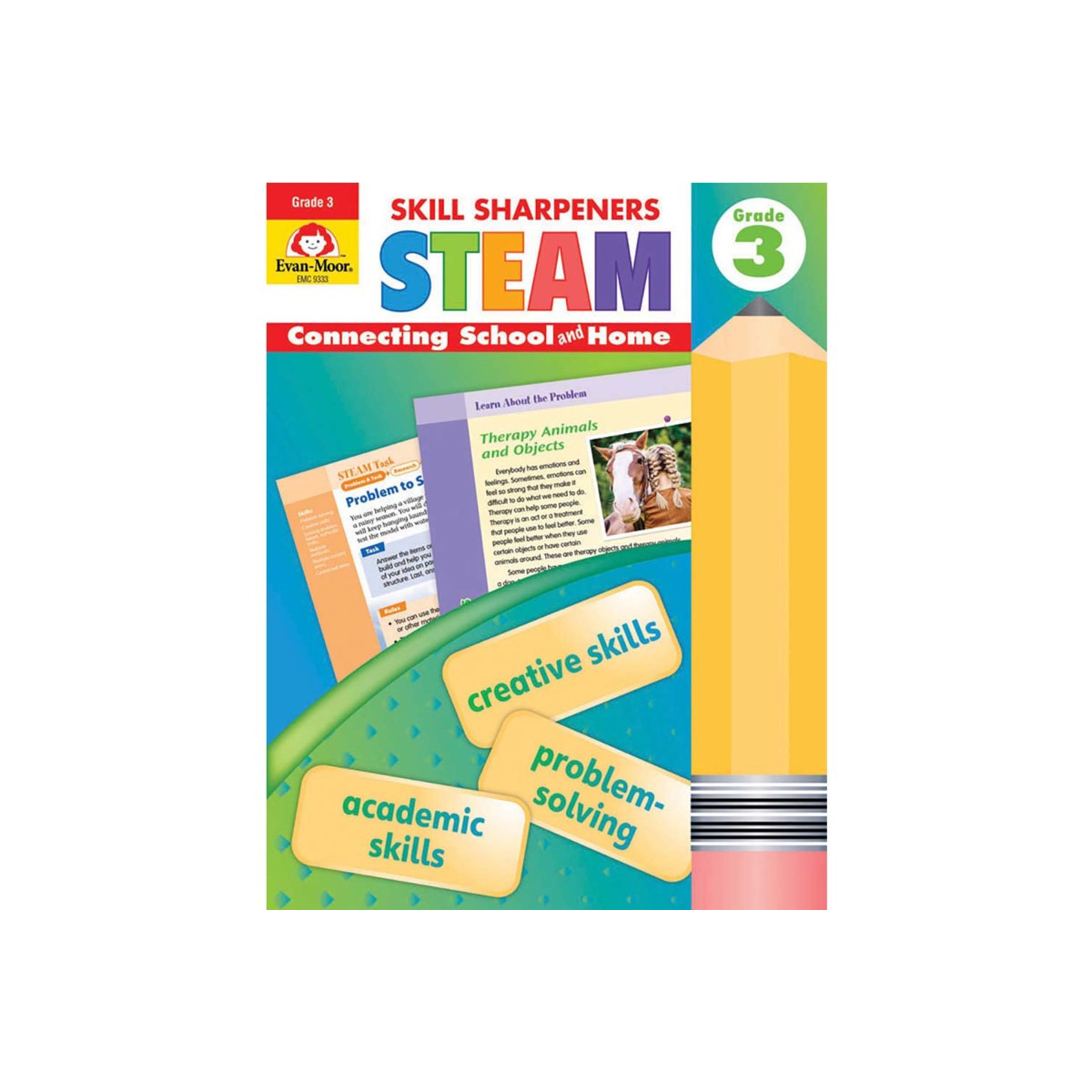 Engage children in solving real-world problems with Skill Sharpeners: STEAM. STEAM is an approach to project-based learning that uses science, technology, engineering, art, and mathematics to engage children in empathizing, thinking critically, collaborating, and coming up with solutions to solve real-world problems.