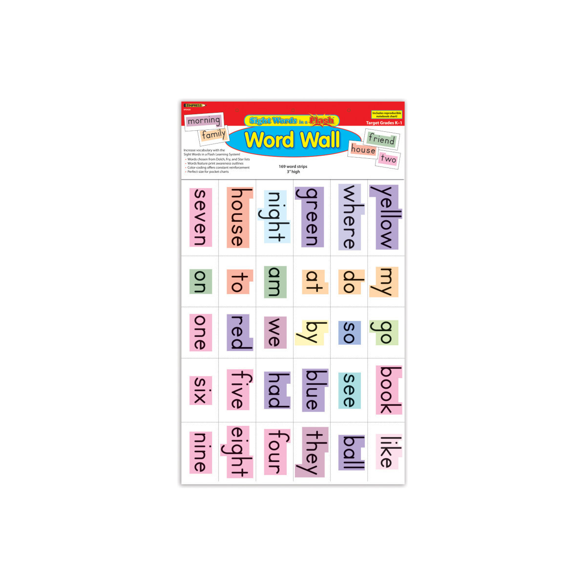 An easy way for teachers to reinforce sight word learning. Great for wall display, pocket charts and sentence strip holders. Words culled from the Dolch, Fry and Star lists. Color-coded print awareness outlines correspond to Sight Words in a Flash cards. Set of 169 word cards includes 17 blank strips. Reproducible Notebook chart. Aligned with Common Core and State Standards. Supports requirements of Title I and other federally funded programs.