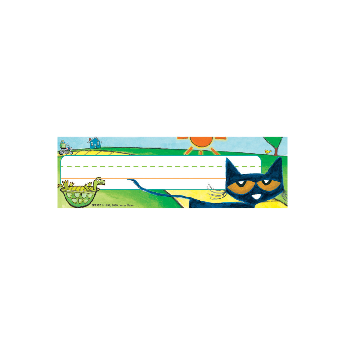 Purrfect for labeling desks and cubbies! Use them to help teachers and substitute teachers learn students' names. Use them to label learning centers, storage areas, and portfolio collections. Laminate them for use as vocabulary flash cards, or work bank labels. Measures approximately 3.5" x 11.5". 36 name plates per pack.
