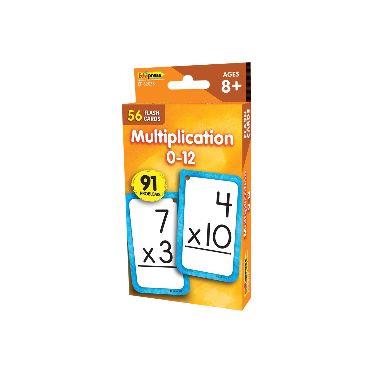 Teach and review multiplication facts individually, in groups, or with the whole class! Each flash card set contains a collection of full-color, high-interest student cards as well as instructions and tips for the teacher or parent, suggested activities, and additional blank cards. Each card has a hole in the top corner that can be fit with a ring or string to help with organization and storage. Additionally, each card has one corner that is shaped differently than the others. By lining up the non-rounded corners, the flash cards can quickly be faced in the same direction. When applicable, flash card sets include answers in small print on the reverse side of each card. Each card measures 3-1/8" x 5-1/8". 56 double-sided cards per pack.