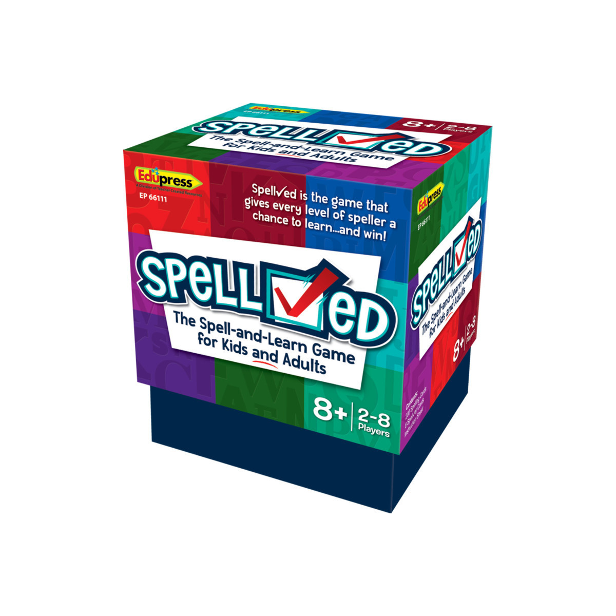 SpellChecked is a card game everyone will enjoy. Players of all ages can practice and improve their spelling and their recognition of spelling patterns in words. Players are shown an image and the first letter of the word, and then they are asked to spell the word correctly. Players earn points for naming the image and spelling it correctly. If they can't spell the word correctly, they can earn points from choosing from three options, only one of which is spelled correctly. There's the option of playing decks with more challenging words, so players of all capabilities can compete against one another and everyone has a chance to win. Includes an instruction sheet and 208 full-color cards: 200 spelling cards and 8 SpellChecker cards. For 2-8 players.