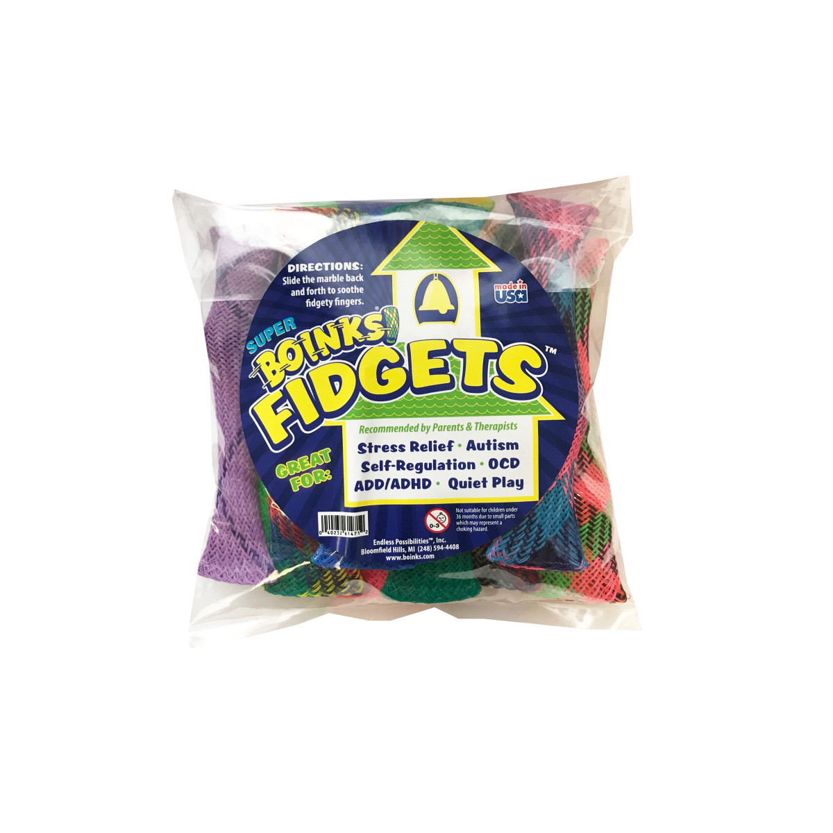 Super Boinks® Fidgets™ are great in helping to reduce stress. Fidgets can help with generalized anxiety disorder, ADD, ADHD, obsessive-compulsive disorder, dementia, and Autism. Fidgets can be used in a classroom, theater, airplane, office or anywhere one needs to keep "quiet hands". Super Fidgets are ideal for anyone with small or large hands. Pack of 10.