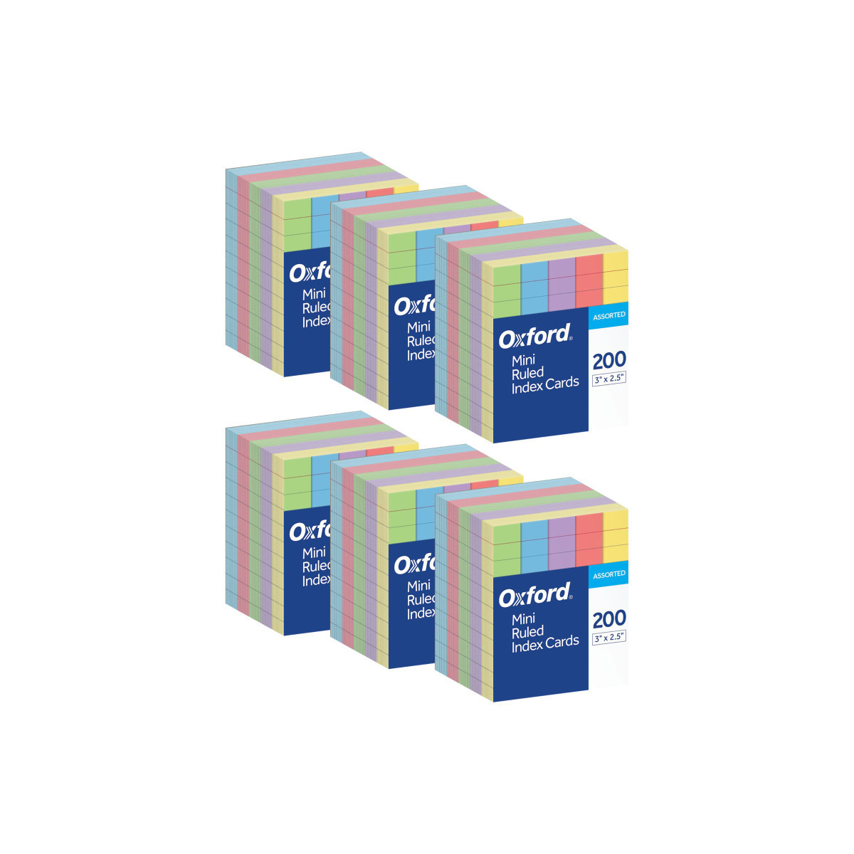 Every break's a study break with cards small enough to fit your pocket. Oxford Mini Index Cards in violet, canary, green and cherry are ideal for organized, color-coded study notes. 3" x 2.5". Ruled. Assorted colors. Each pack includes 200 index cards. Sold as 6 packs for a total of 1200 index cards.